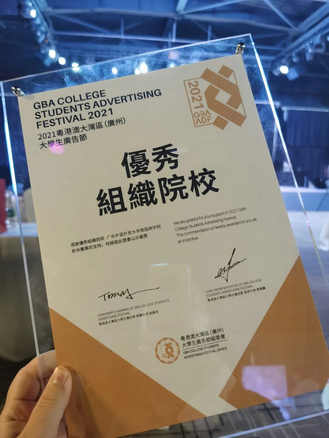 本网讯 近日,在首届粤港澳大湾区(广州)大学生广告节(以下[简称‘粤港澳湾广节’])中,新媒体与国际传播学院共获3件优秀奖、2件入围奖。