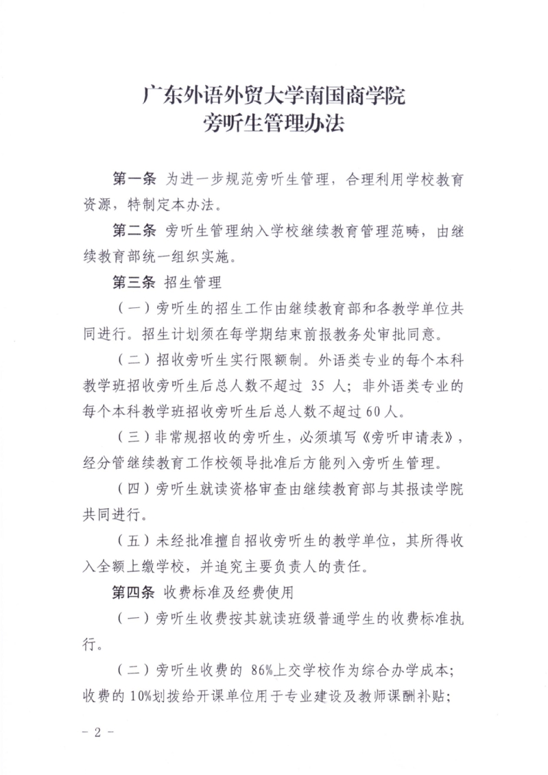 关于印发《广东外语外贸大学南国商学院旁听生管理办法》的通知