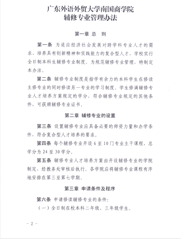 关于印发《广东外语外贸大学南国商学院辅修专业管理办法》的通知