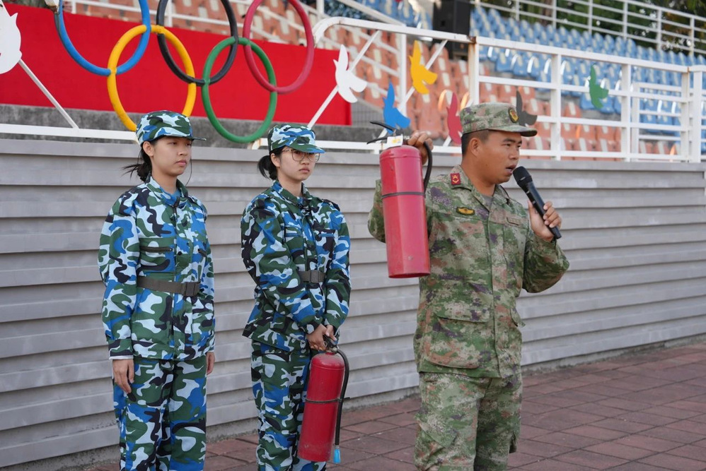 在军训热潮如火如荼推进之际,消防演练重磅登场。警报骤响,划破长空,同学们反应敏捷,即刻依照预定路线,紧张却又井然有序地疏散撤离。他们以军帽掩住口鼻,压低身形,弯腰快步穿梭,如灵动敏捷的猎豹,最终成功抵达安全区域。这场演练切实强化了同学们的消防安全认知,使其在面对突发紧急状况时,能够沉稳冷静、应对有方。