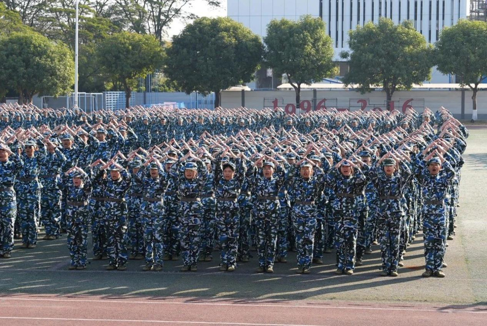 晨曦初照,微光洒向校园,同学们闻令而动,迅速集结。训练场上,一步一伐间,手臂有力地扬起,在空中划出刚健弧线;脚步重重踏地,溅起层层尘土。每一次踢腿,都似要冲破阻碍;每一次摆臂,皆为突破自我;每一次落地,更踏出坚韧不拔之志。汗水如雨,浸透衣衫,却浇不灭同学们的热情,口号声愈发高亢嘹亮,响彻校园上空。