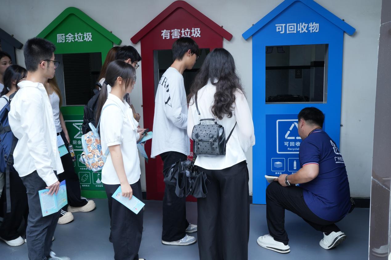 行程首站,同学们赴白云区杨村园环保驿站,参观综合性环卫枢纽,了解再生资源分类回收流程,加深垃圾分类认知,感受智能化操作以夯实“变废为宝”理念;次站前往京溪街资源集运中心,了解其“互联网 + 废弃物全品类回收 + 大数据分析”模式及分拣流程;末站至白云区大件家具处理中心,参观展馆学习垃圾分类知识,了解资源化利用与智慧管理,并观摩全自动一体化处理及再加工出料全过程。