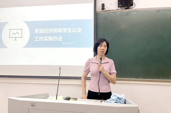 本网讯 为进一步做好2024年秋季学期学生资助工作,推进精准资助,提升育人成效,9月14日,学生处学生资助中心举行家庭经济困难学生认定工作培训会。各学院辅导员参加培训。培训会由学生资助中心主任余小玲主持并担任主讲人。