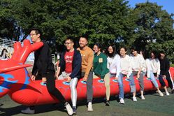 赛场上不仅有运动选手们的身影,在草场内,教职工的比赛也在热火朝天地进行中。赛龙夺锦、珠行万里、迎面接力等比赛,老师们也奋力前行,脸上洋溢着开心的笑容,彰显了我们西院开放乐观的精神风貌。让我们一起来看看西院老师们的风采吧。