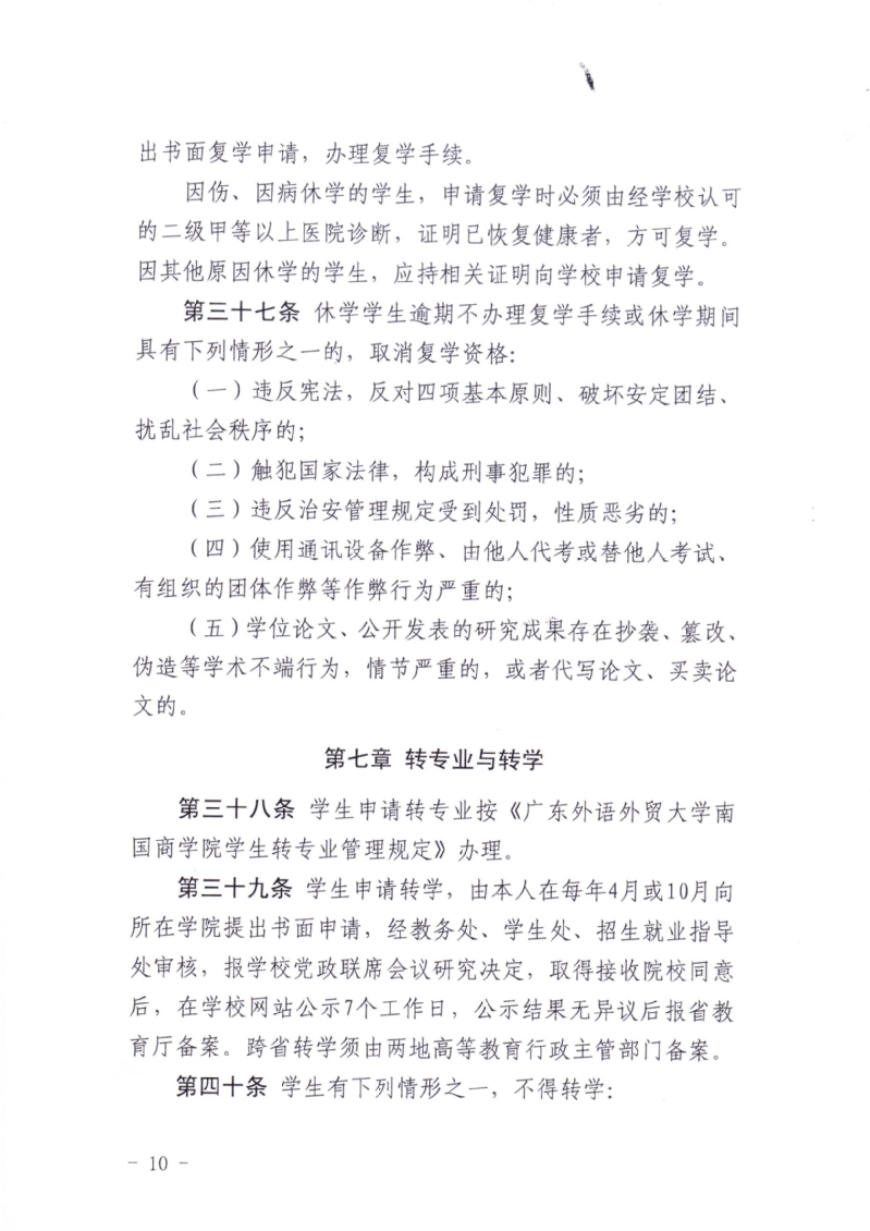 关于印发《广东外语外贸大学南国商学院本科学生学分制学籍管理规定》的通知