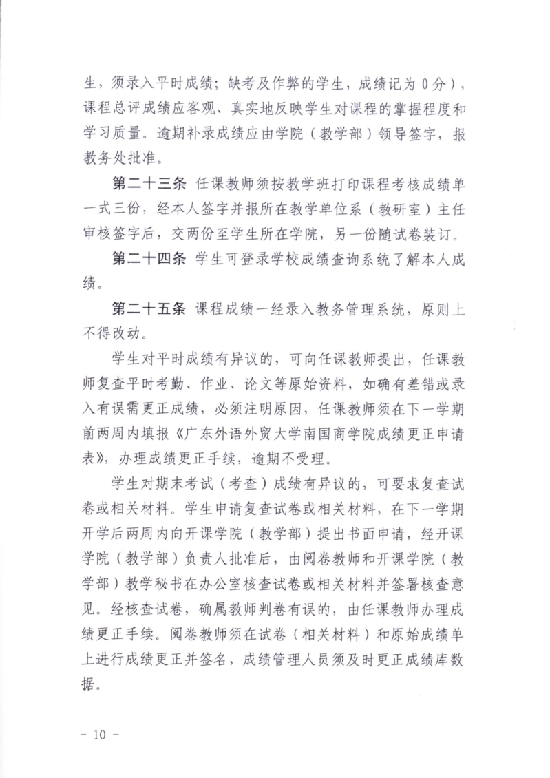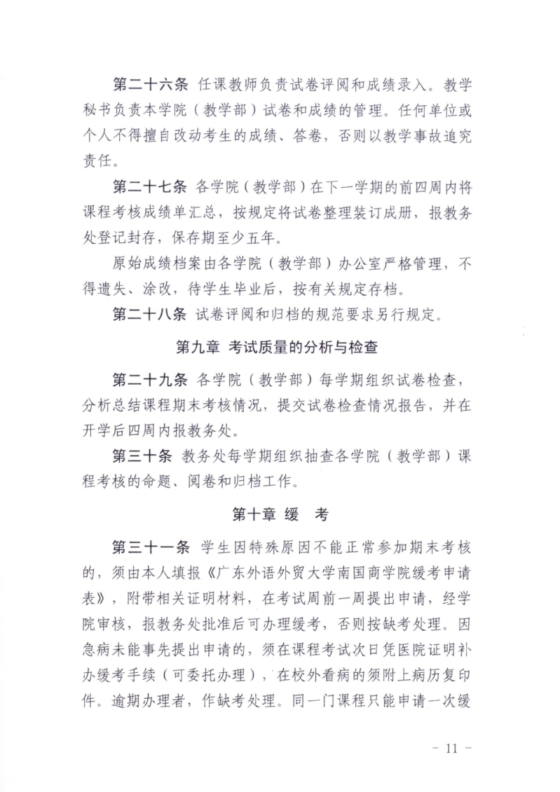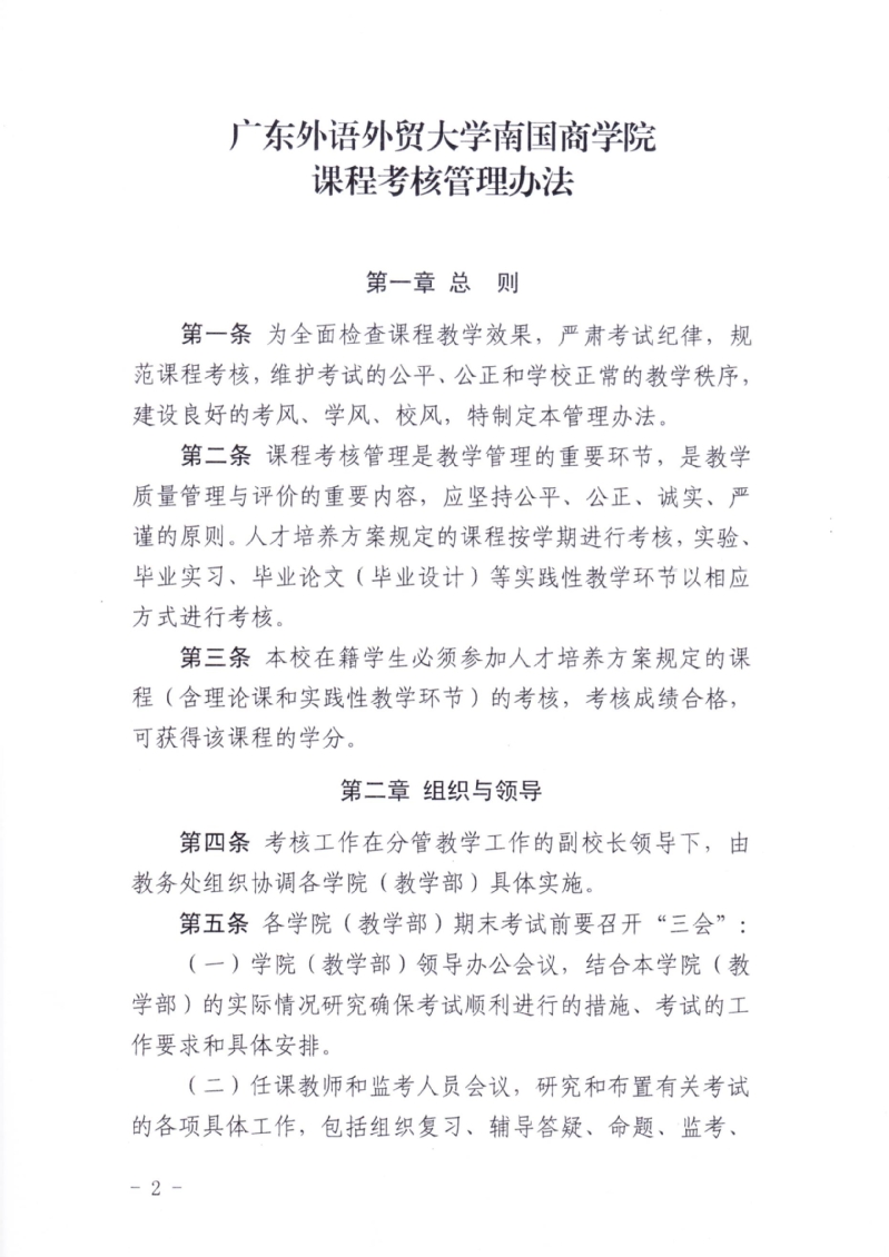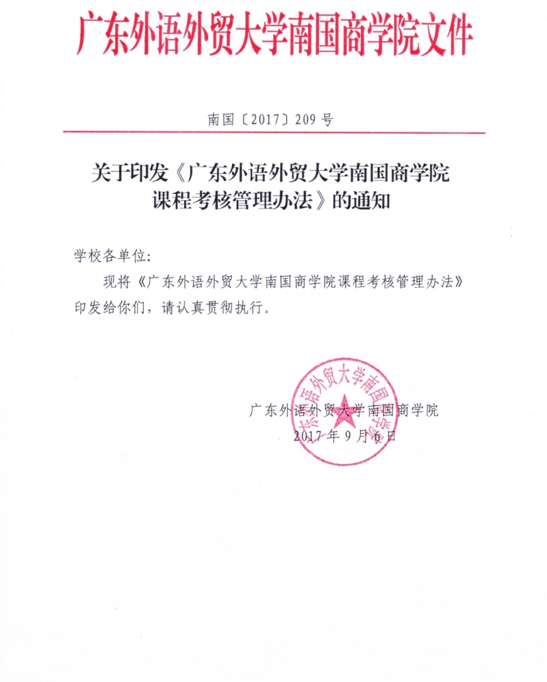关于印发《广东外语外贸大学南国商学院课程考核管理办法》的通知
