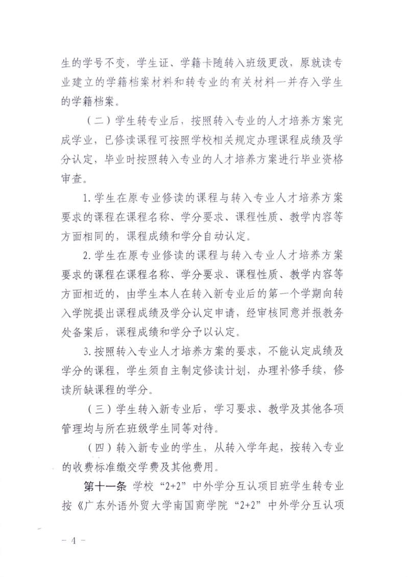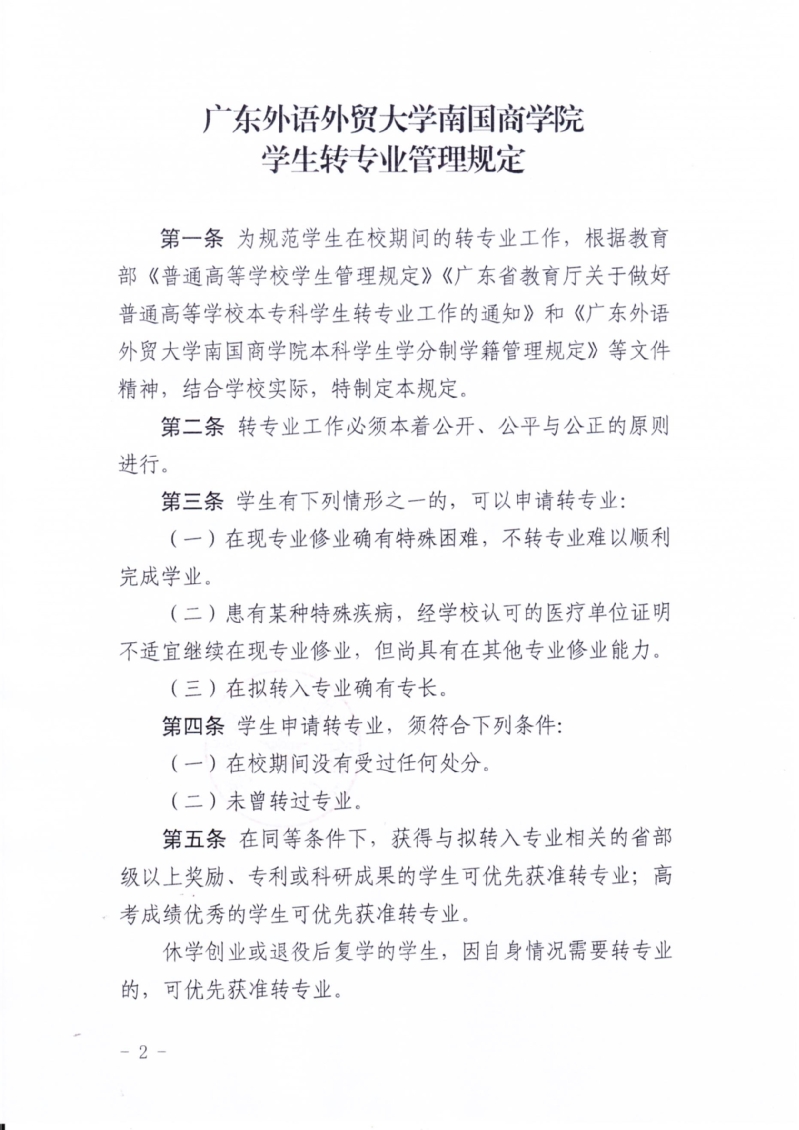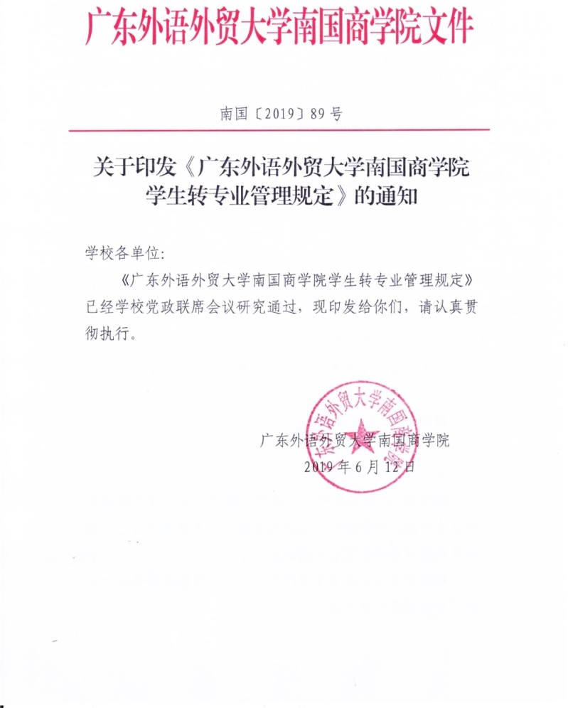 关于印发《广东外语外贸大学南国商学院学生转专业管理规定》的通知