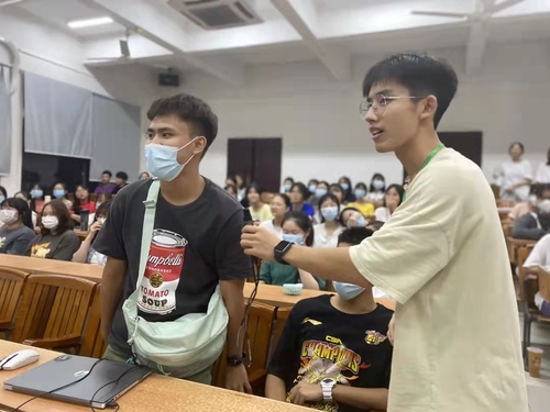 在演讲过程中,18级朱慧敏学姐结合自身经验向同学们分享了提升专业素养的建议,鼓励同学们好好把握展现自己的机会,相信自己,就如陈院所说:“学语言要敢说,不要怕自己丢脸。”紧接着20级王伊楠学长向大家分享了自身在学业生涯不同阶段新事物的故事以及对新事物的认知和感悟,鼓励萌新们在SCBC积极挖掘和探索新事物。最后20级李明轩学长认为大一,是学生生涯的一个新的起点,是完成由中学生向大学生角色转换的关键阶段。大学的学习模式的教育与高中是不同的,大学学习更多的是以自觉性为主,因此学长建议同学们要提前最好学习计划。