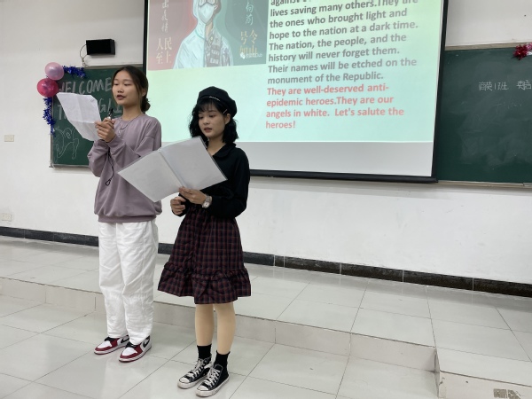 本网讯 11月9日晚上7:00-8:20英文学院学生会学生部在F102举办了主题为FIGHTING COVID—19的第六期英语角活动。英文学院胡绮哲老师,外教Jean以及21级商务英语1班、2班、21级英语3班、4班全体同学参与了本次活动。