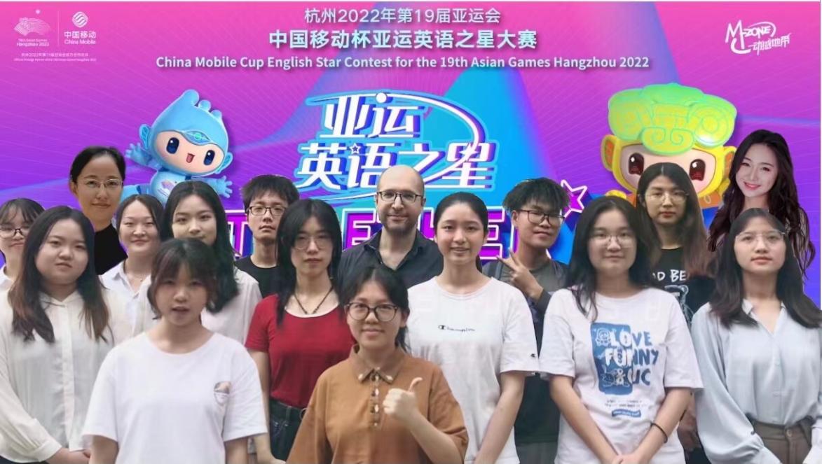 2022年第19届亚运会“中国移动杯亚运英语之星”大赛由杭州亚组委、中国日报社、中国移动通信集团有限公司联合主办,旨在响应将在杭州举办的第19届亚运会,营造亚运氛围,弘扬奥林匹克精神,普及杭州亚运会知识,激发全社会参与和服务亚运会的热情,打造杭州“赛事之城”的国际化形象。比赛于2021年5月20日正式启动,吸引了来自全球30余个国家和地区近5万名选手参赛。我院吴梦玥等同学在方慧、巢佳玉、外教Jean等老师的指导下,从复赛中脱颖而出晋级全国决赛。因为疫情影响,全国决赛在“云端”赛场进行的。
