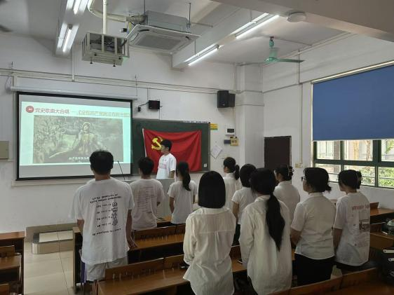 为帮助积极分子们厚植爱国主义情怀,坚定理想信念,参加活动的同学进行了党史歌曲大家唱环节,齐唱经典红色歌曲《没有共产党就没有新中国》。