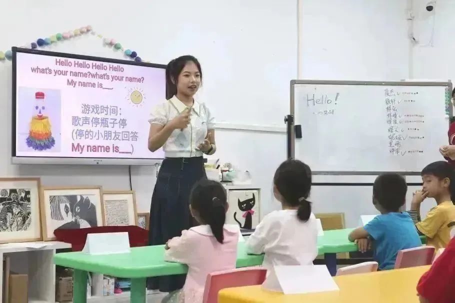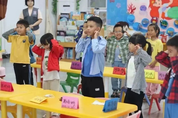 小朋友们在活跃的课堂中,通过小游戏和小视频掌握了有关身体、颜色、水果等基本单词,在英语思维方式、综合能力等多方面得到启发和提升。