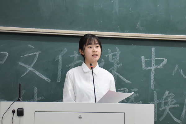 第二项议程,现任主任处代表叶静渝学姐进行发言。她对一直以来关心和支持传媒中心工作的领导和老师们表示衷心的感谢,感谢他们的悉心指导和帮助,带领我们传媒中心,不断突破,走向更加美好的明天,也对上一任主任、部长以及干事们表示深深的敬意。同时,她指出中文传媒中心“传播中文风采,报道院内动态”的宗旨,希望传媒中心的新成员们能继续发扬传媒中心的优良传统,勇于创新,敢于担当,共同推进传媒中心走向更加美好的明天。