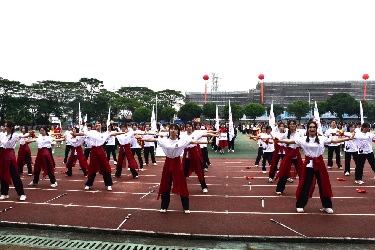 各大学院的方阵表演精彩纷呈,中文学院更是当仁不让。瞧!表演的同学们手持剑柄,剑柄似灵动游龙,在他们手中翩然起舞。那刚劲有力的剑舞,仿若书写着豪迈的诗篇。剑舞作罢,他们又瞬间化为活力精灵,跳起灵动十足的舞蹈,舞步轻盈欢快,充满了青春的朝气与激情,在表演场上闪耀着独特的光芒。表演展示完毕后,中国语言文化学院亮出了他们的口号:“中华文化,厚重辉煌,中文学院,再续华章”。