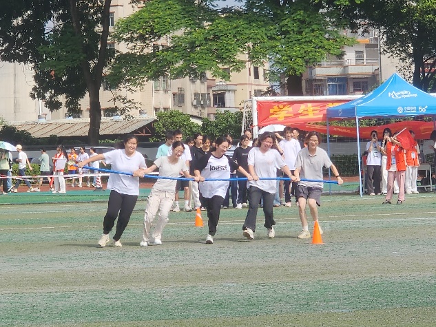 在等待比赛的过程中,参赛运动员们手拉手,共同绘制了一个同心圆。随着裁判员的一声枪响,运动员们迅速进入状态。参赛运动员们团结一心,通过扭动着身体,迅速将呼啦圈传递给下一个选手。呼啦圈仿佛有了生命一般,轻盈地穿梭在每位参赛运动员之中。这不仅是一场速度与技巧的比赛,更是一场团队精神的展示。我们看到了参赛运动员们为了共同目标而努力的精神,展现出了极佳的团队协作能力和身体协调性。最后,我院荣获男女学生呼啦圈比赛的冠军!