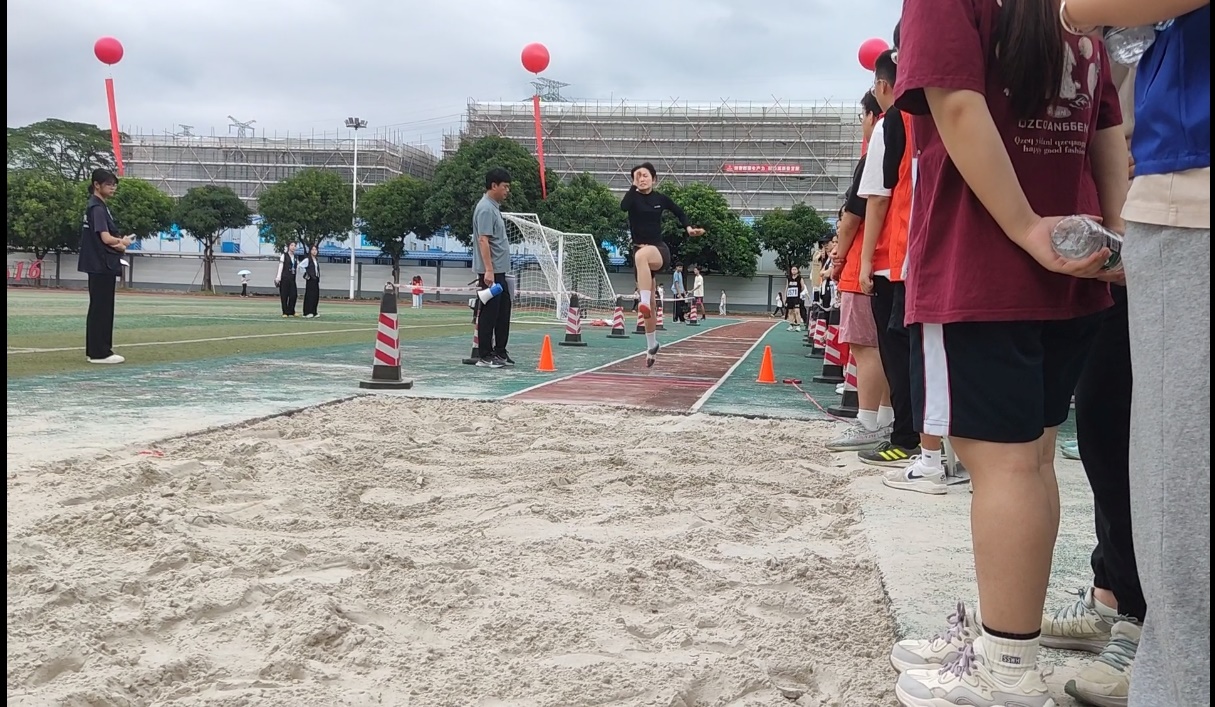 在运动会热闹非凡的赛场上,跳远比赛的沙坑旁总是聚集着无数双期待的眼睛。每一次运动员的助跑、起跳、腾空和落地,都像是在书写着拼搏与超越的壮丽诗篇。我院选手在大家的加油助威中,跳向更远。