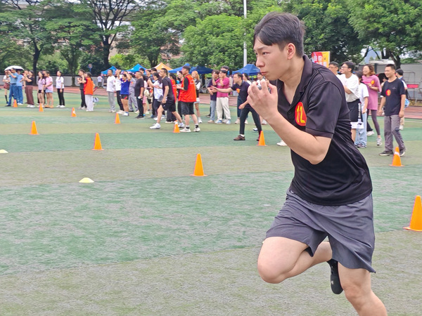11月15日中午13时,教职工12x60m男女混合迎面接力项目在田径场顺利举行。随着一声枪响,老师们便如箭离弦般向前奔去,接力棒在老师们的手中传递,每一次传递都准确无误,展现了教职工之间的默契与团队精神,跑道旁的学生们的呐喊声此起彼伏,他们用最热情的欢呼为老师们加油助威。最终,经过激烈的角逐,各组选手都以饱满的热情完成了比赛,老师们冲过终点后,有的相互拥抱,有的累得气喘吁吁却满脸笑容,现场气氛热烈非凡。这一刻,校运会不仅仅是一场体育赛事,更像是一场凝聚人心的盛宴,无论是参赛的老师,还是观赛的学生,都深深感受到了团结奋进的力量,体现了体育竞技的真正意义。
