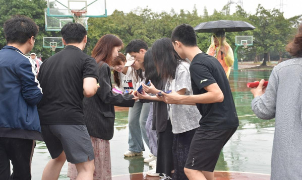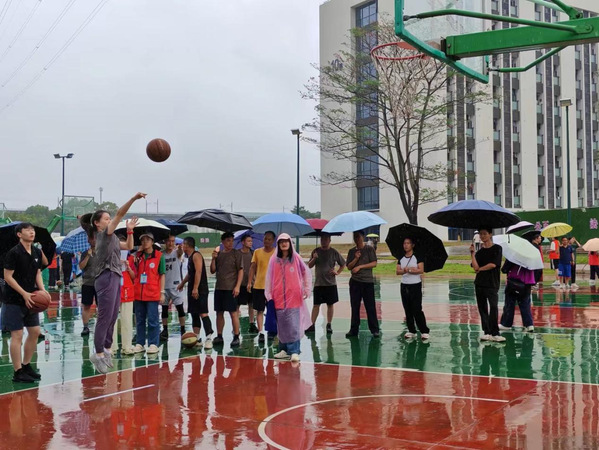 中文新媒联合工会的老师们进球不断,赢得一阵阵欢呼。工会老师们的耀眼表现,是定点投篮项目的一大亮点。因为每一次投篮,都是一次冒险。而中文新媒联合工会的老师们敢于冒险,他们相信自己能够创造奇迹,成为篮球场上的传奇,围观比赛的师生们无不为他们鼓掌。