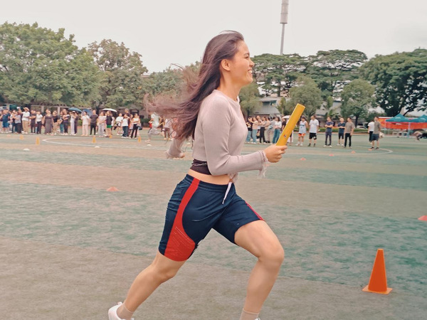 在4×100接力的赛场上,没有孤军奋战,只有紧密无间的团队合作。每一棒的交接,都是信任与默契的传递;每一次眼神的交流,都蕴含着对胜利的渴望与坚持。老师们是彼此最坚实的后盾,用无声的默契编织成通往胜利的道路。第二棒是陈星龙老师,他正大跨步地向前跑,紧握接力棒向杨若颉老师跑去,而若颉老师也聚精会神地紧盯着接力棒,在那千钧一发的时刻,第一次交接顺利完成,这为接下来的交接打响了响亮的第一枪。
