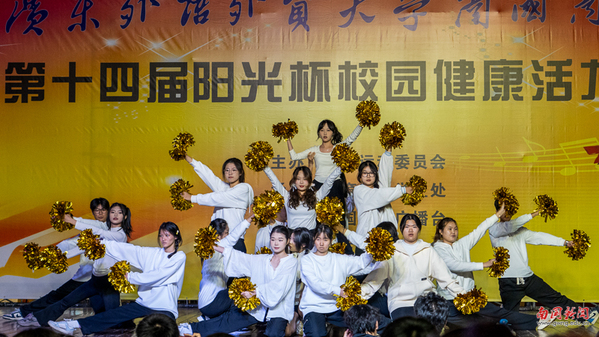 本网讯 12月5日晚,我校第十四届“阳光杯”健康活力大赛在商业街舞台举行。本次大赛共设花球啦啦操和街舞啦啦操两大项目,吸引了18支队伍同台竞技。经过激烈的角逐与精彩的比拼,最终按照各参赛队伍在各单项比赛中所获分数相加计算总分决出名次。中国语言文化学院代表队荣获冠军,教育学院代表队和经济学院代表队分别获得亚军和季军。董事长丁小军、体育部主任严强、学生处副处长王黎明和各学院领导或教师代表出席了本次活动。