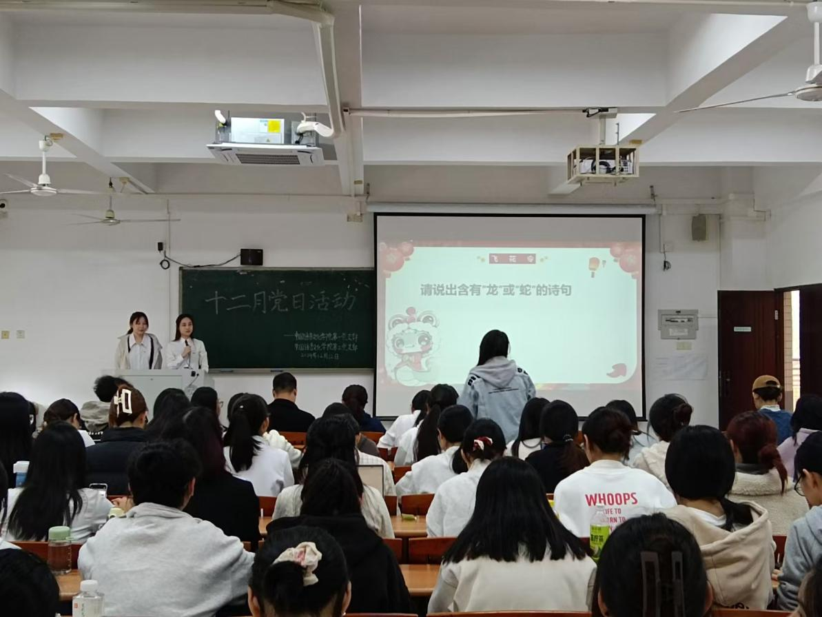 本网讯 弘扬历史经典,传承优秀文化。中国语言文化学院第一党支部与第三党支部于12月12日在F402共同举办了一场别开生面的主题党日活动。以 “党启昌期运,泰象焕阳春” 为主题,不但让师生们感受到了浓浓的新春氛围,更是一次深入学习贯彻习近平新时代中国特色社会主义思想,传播红色精神、增强文化自信的生动实践。