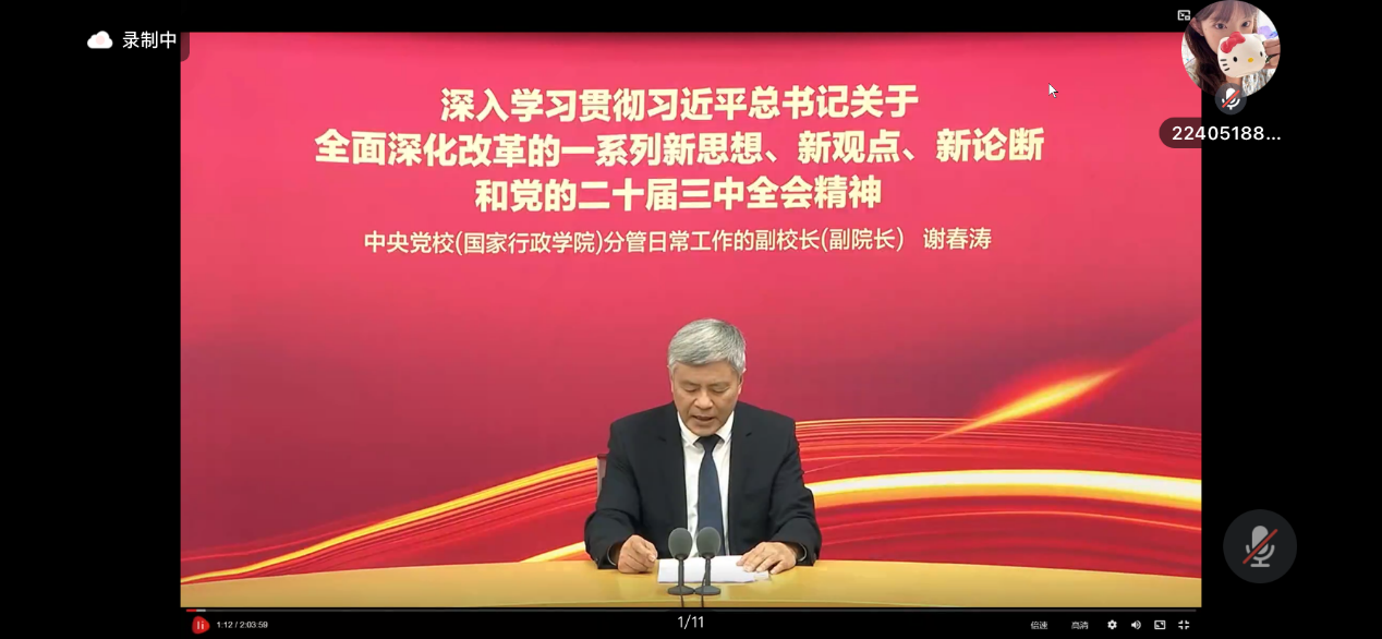 在本次培训活动中,同志们集体观看了党的二十届三中全会精神专题视频,深入领会了习近平总书记关于全面深化改革的一系列新思想、新观点、新论断和党的二十届三中全会精神的精髓。党的二十届三中全会为全面深化改革指明了方向,让人倍感振奋与鼓舞。全会强调的进一步全面深化改革,凸显了其在推进中国式现代化进程中的关键作用,让同志们深刻认识到改革的必要性和紧迫性。同时,全会体现出的对人民利益的高度重视,如以促进社会公平正义、增进人民福祉为出发点和落脚点等,让同志们感受到党始终把人民放在中心位置。这也激励同志们在工作和生活中,积极响应号召,努力为改革事业贡献自己的力量,助力国家更好地发展。